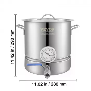 5 Gallon Stainless Steel Brewing Kettle with Thermometer & Ball Valve
