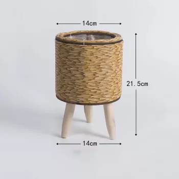 Vintage Imitation Rattan Flower Stand with Wooden Legs